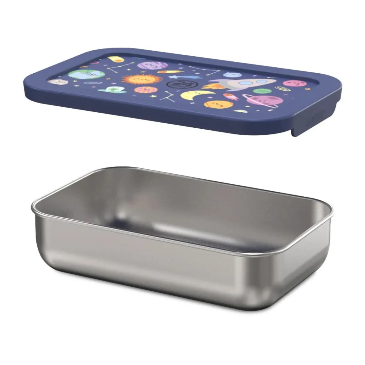 Mit der Snackbox Space Friends von starten kleine Entdecker und Astronautinnen in ein spannendes Weltraumabenteuer. Verschiedene Planeten, Raketen und Satelliten ziehen auf dem Deckel der Box ihre Kreise. Lassen Sie Ihre Kinder in die spannende Welt des Universums eintauchen und dabei gut versorgt mit Essen sein.