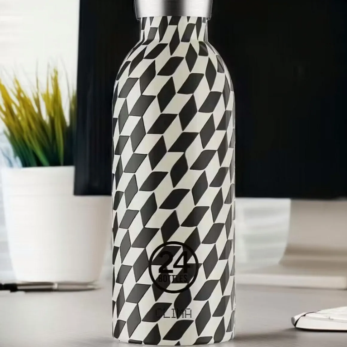 Mit der Thermo-Trinkflasche Clima Bottle Groovy White von halten Sie nicht nur Ihre Getränke auf Temperatur, sondern trumpfen durch die Musterung auch mit einer optischen Täuschung auf.