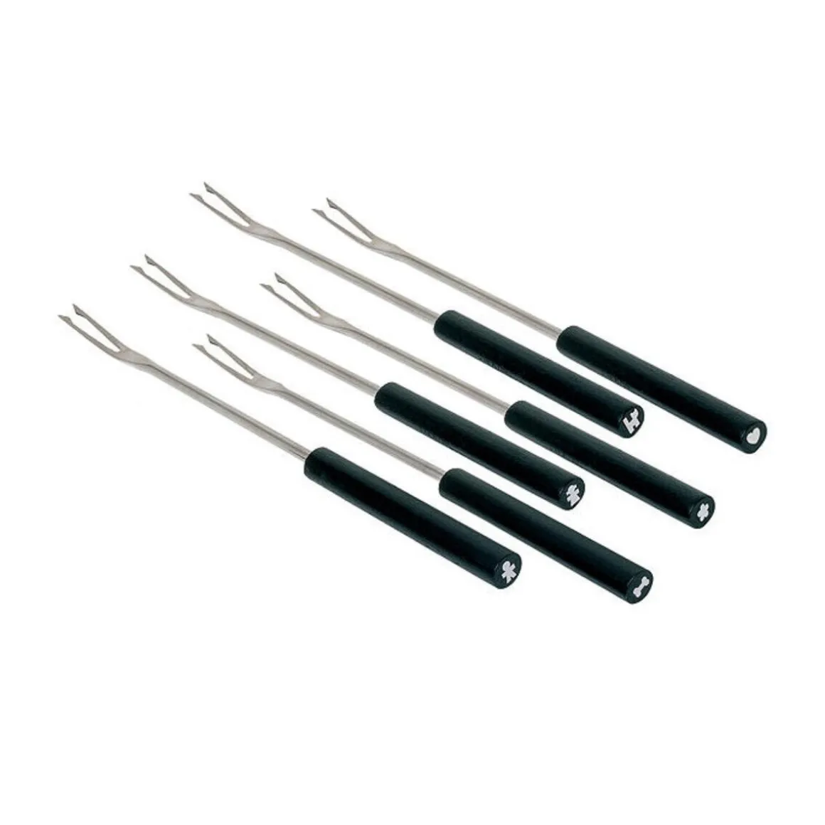 Für ein gemütliches Abendessen mit der Familie und für eine gesellige Runde mit Freunden ist Fondue eine gute Wahl. Mit den Fonduegabeln von Alessi können Sie Fleischstückchen im heißen Fett garen oder Brotstücke durch eine Käsesauce ziehen. Sie sind aus hochwertigem Edelstahl gefertigt und mit zwei spitzen Zinken versehen. Der Griff besteht aus schwarzem Holz, wodurch die Gabeln gut in der Hand liegen. Aufgrund ihrer Länge von 27 cm besteht keine Verbrennungsgefahr beim Eintauchen ins heiße Öl.