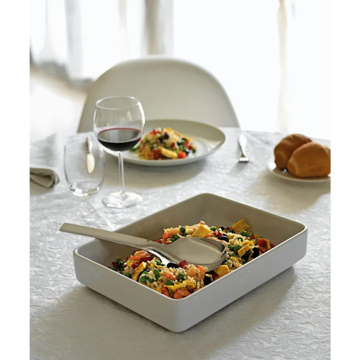 Der schlichte Reis- und Gemüselöffel Tibidabo von ist dank der breiten Kelle sehr funktionell. Er hebt Reis und Gemüsebeilagen portionsweise auf den Teller.