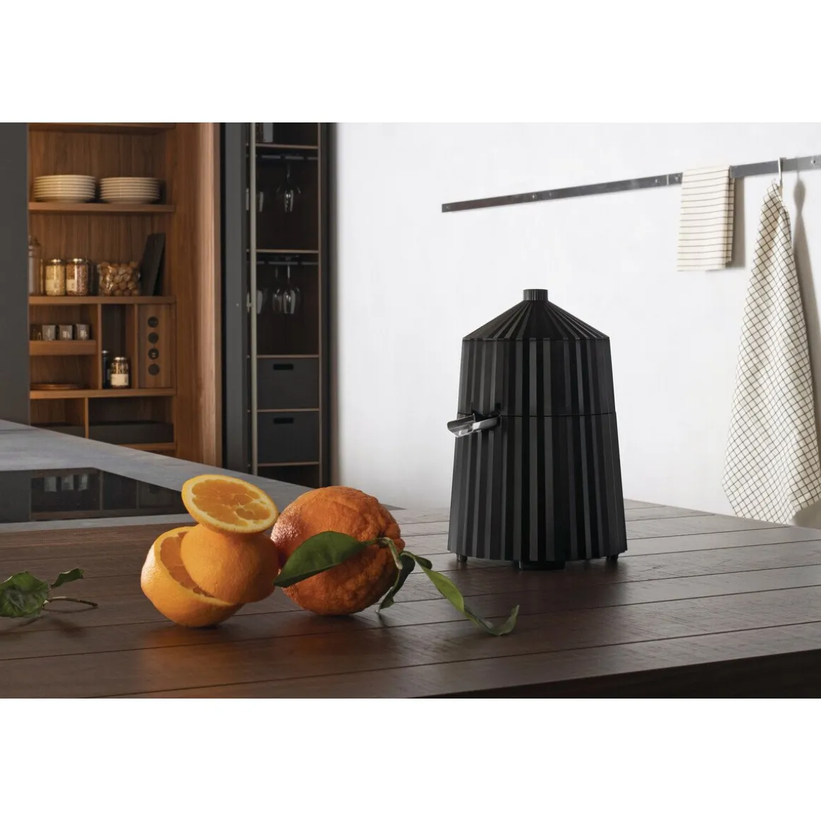 Die schwarze Zitruspresse Plissé von verhilft Ihnen zu frischen Fruchtsäften und sieht dabei noch unverschämt gut aus. Mit ihrem leistungsstarken Motor schont sie Ihre Kräfte, während sie durch ihr Faltenkleid gleichzeitig dekorativ wirkt.