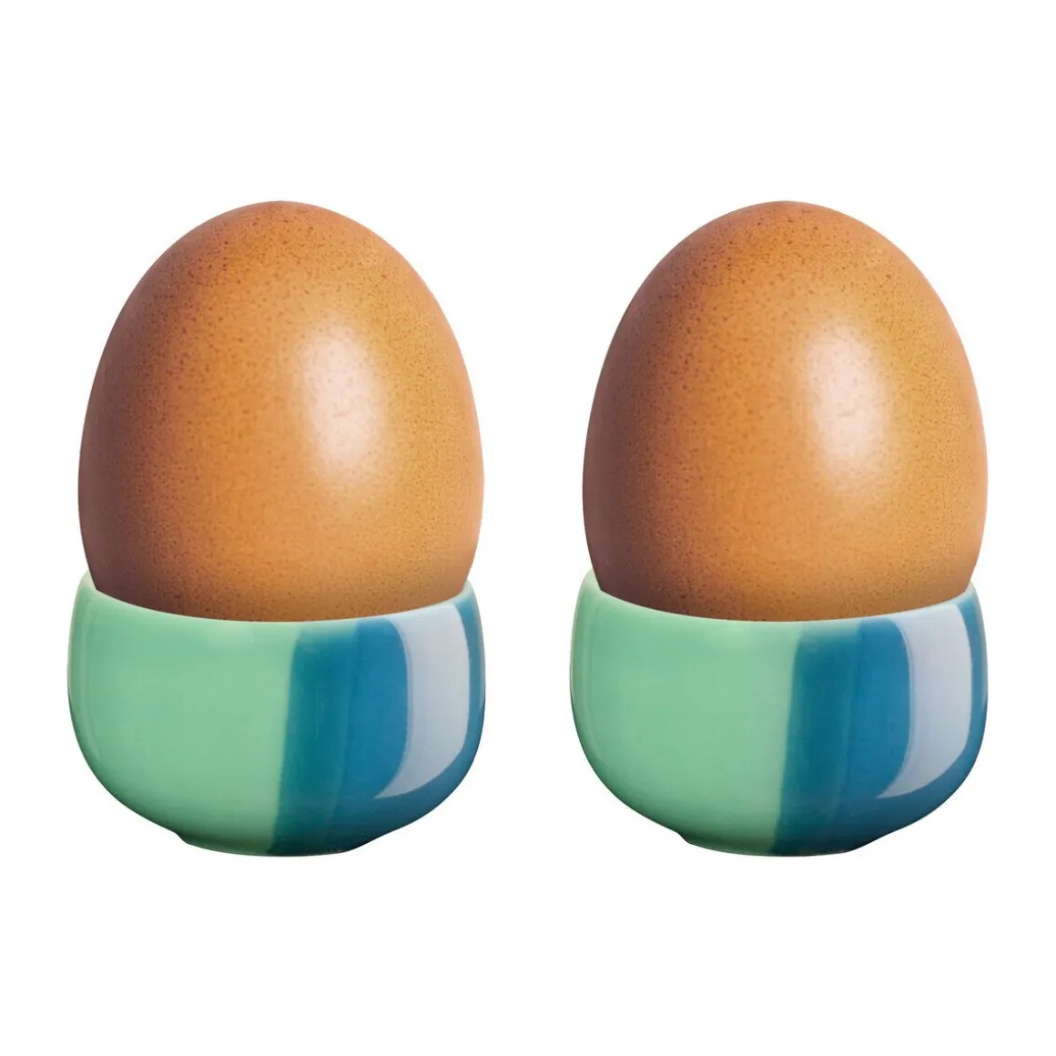 Knallig bunt geht es mit den Eierbechern Joy Blueberry Smoothie von auf der Tafel zu, denn mit ihnen lassen sich farbenfrohe Akzente setzen. Ein kräftiges Blau und ein leuchtendes Grün werden vereint, um die Farbpracht der Blaubeere zu repräsentieren und den Tisch mit fruchtiger Fröhlichkeit zu füllen. Kredenzen Sie Ihre Frühstückseier in diesen schönen Stücken.