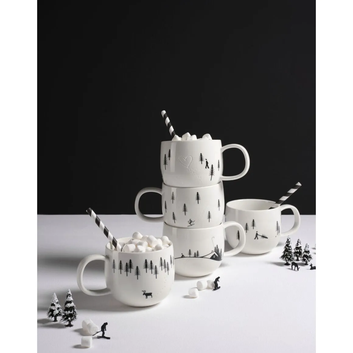 - Dekor zeigt filigran ausgestaltete Silhouetten und Formen einer Winterlandschaft