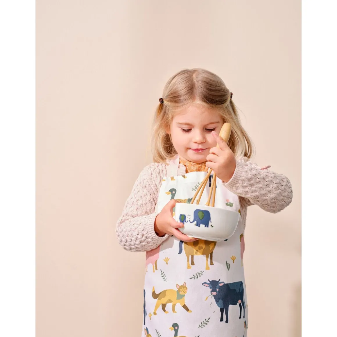 Die Kinderschürze Kids Farmlife von begeistert durch ihren tollen Print, der von vielen Bauernhoftieren geprägt ist. Mit dieser Schürze werden Ihre Kleinen schnell zu großen Köchen in der Spielküche oder zu fleißigen Helfern bei der Essenszubereitung.