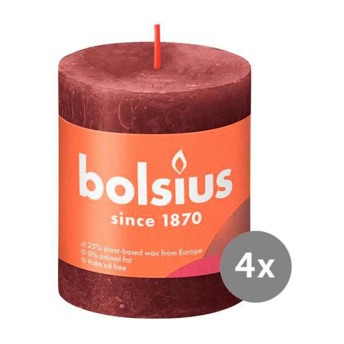- Stumpenkerze Rustik Shine Samtrot im praktischen 4er-Set
