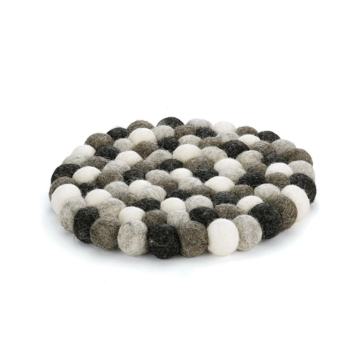 Der Untersetzer Lana Grigio von besteht aus vielen Filzkugeln, die Ihre Oberflächen vor zu hohen Temperaturen schützen. Die Schafwolle wird nachhaltig in Nepal von Hand verarbeitet und mit azo freien Farben gefärbt. Somit leisten Sie mit Ihrem Kauf einen sozialen Beitrag entlang des fairen Handels und unterstützen die Frauen in Nepal.