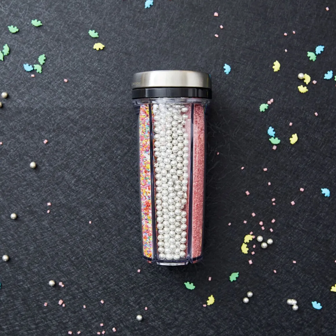 - eignet sich für Salz, Thymian, Schokoladenstreusel oder Kaffeepulver
