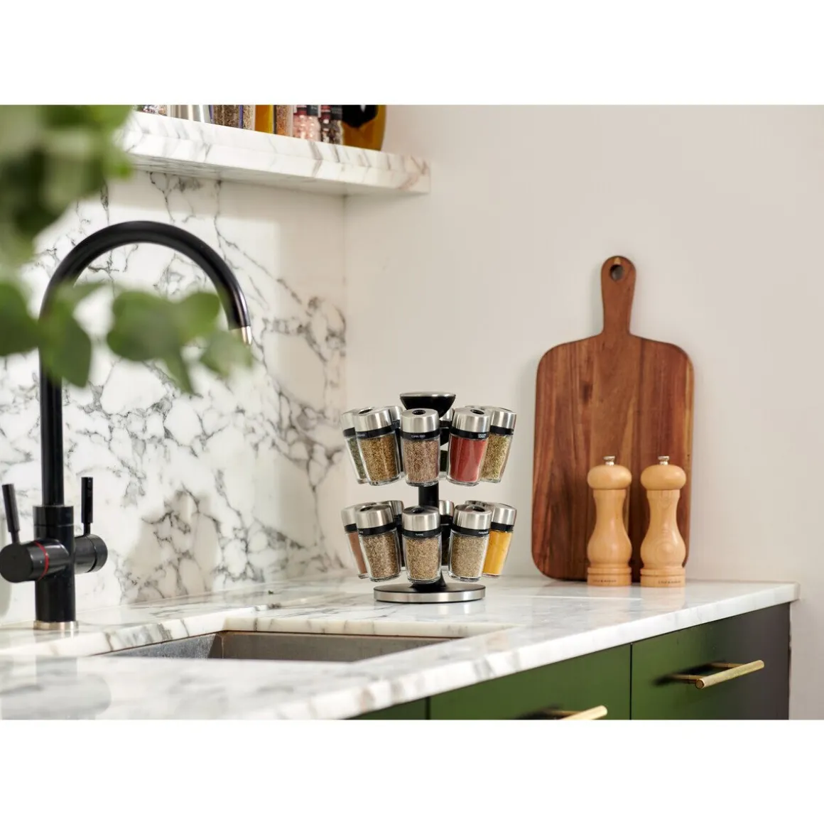 Mit dem Kräuter- und Gewürzkarussell Cambridge von haben Sie Ihre Standardgewürze jederzeit griffbereit zur Hand. Strukturiert, leicht zu finden und kompakt beieinander – das bringt Ordnung und funktionale Ästhetik auf die Arbeitsfläche.