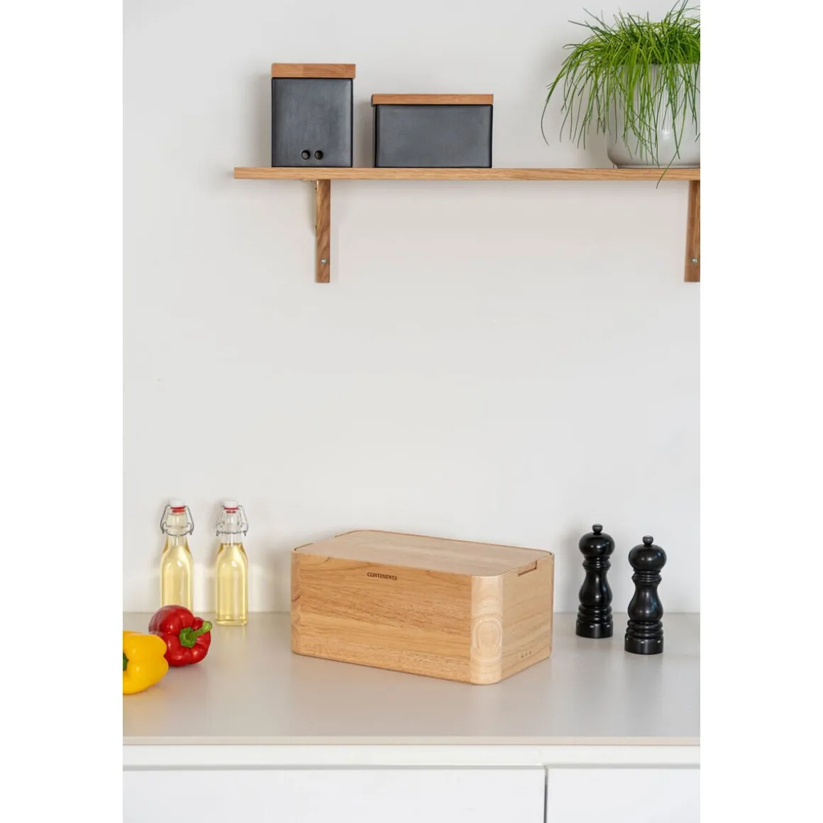 - der passgenaue und abnehmbare Deckel ist mit Krümelrillen ausgestattet und dient auch als Brotschneidebrett