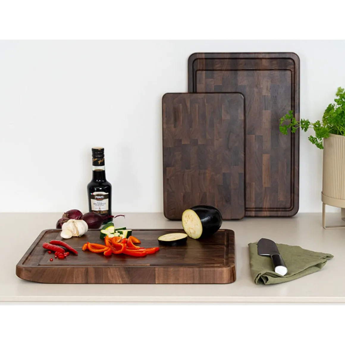 - Tranchierbrett Walnuss Stirnholz mit handlicher Griffkante