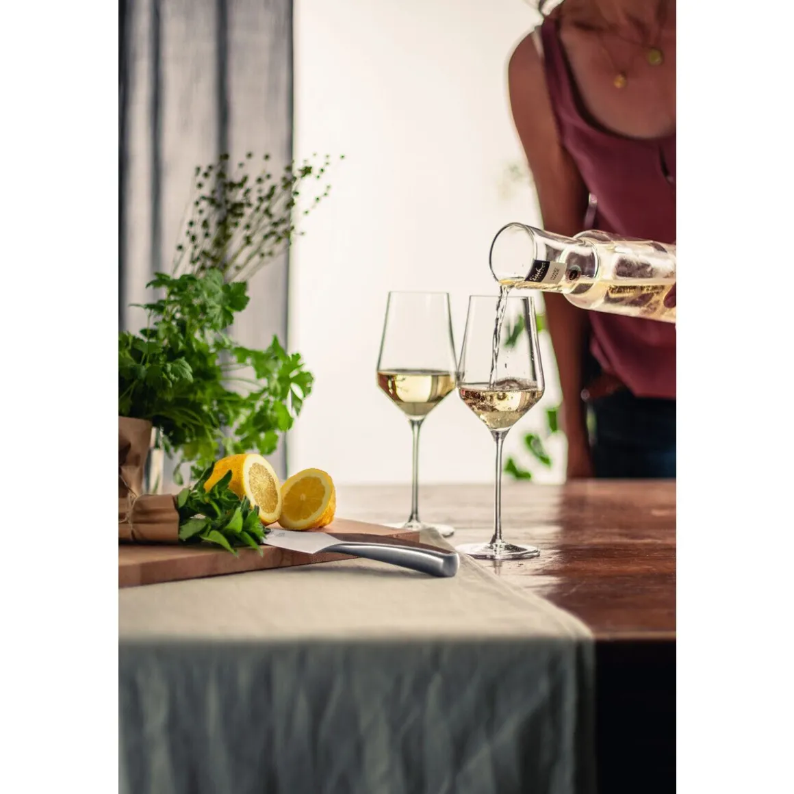 Durch die geometrische Form glänzt das Weißweinglas der Serie Sky Sensis plus von besonders formschön.