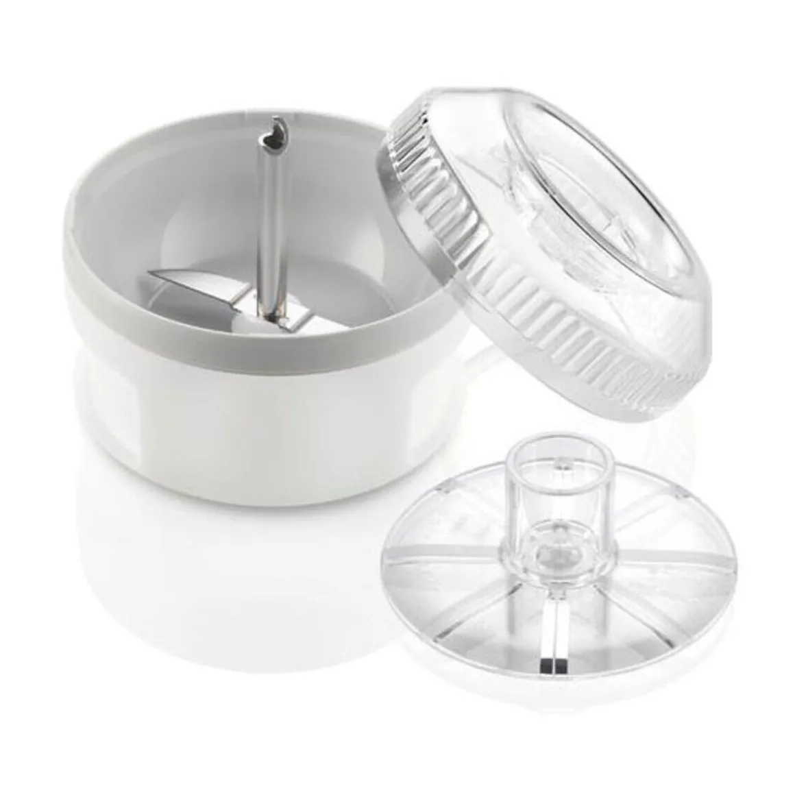 Der Zauberstab Processor von ist ein praktisches Utensil zum Hacken, Zerkleinern und Mahlen von festen, trockenen Lebensmitteln. Kräfteschonend und einfach stellen Sie Paniermehl, Parmesan oder Erdnussbutter in kurzer Zeit her.