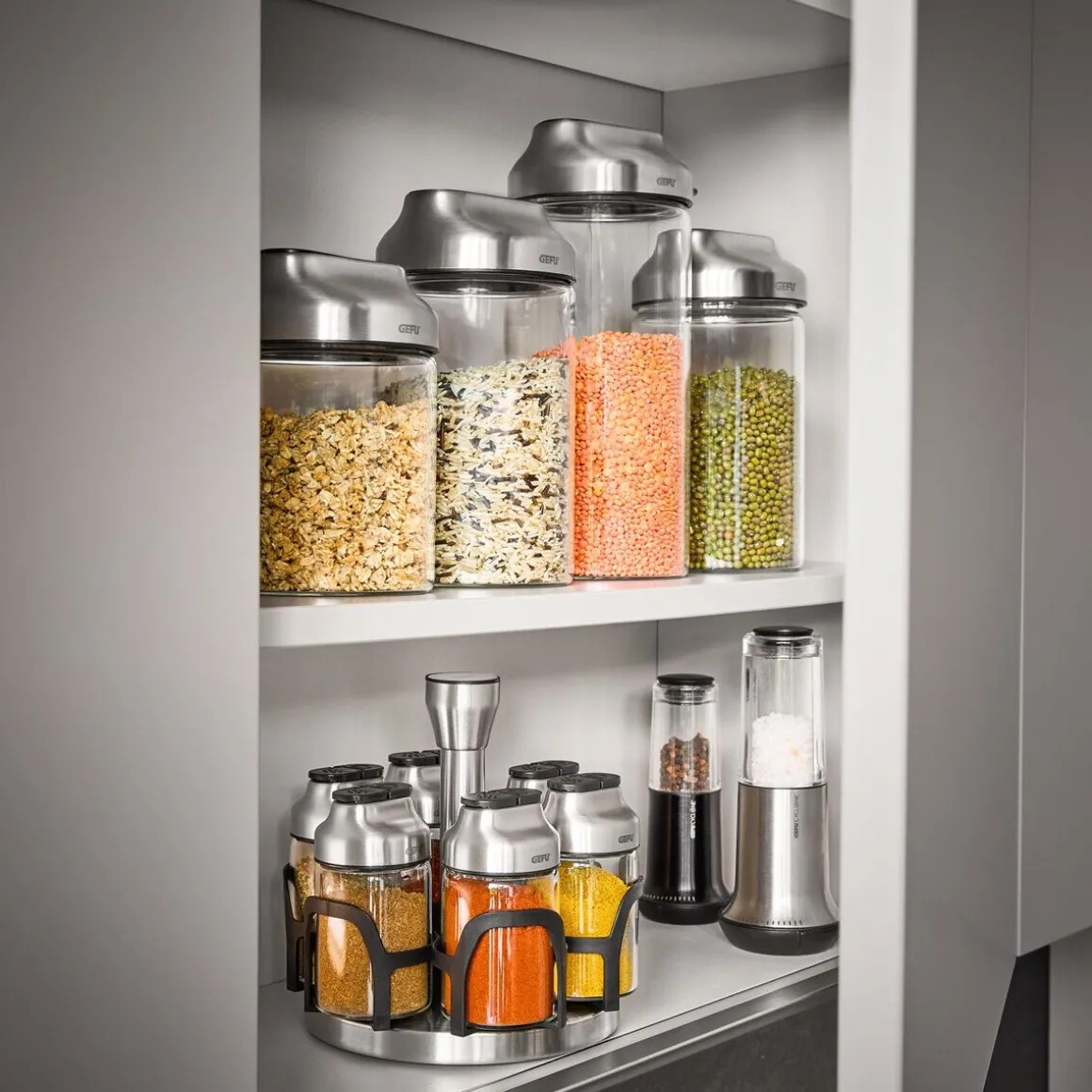 Die Vorratsdosen Kippo von lassen sich zur Aufbewahrung und zum Frischhalten Ihrer trockenen Lebensmittel hervorragend nutzen. Haferflocken, Mehl, Nudeln oder Reis – all diese Lebensmittel lassen sich in diesen praktischen Dosen ideal sortieren und lagern. Bringen Sie mit diesen Aufbewahrungsdosen Ordnung in Ihren Küchenschrank.
