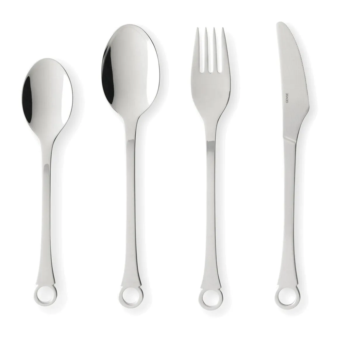 Das Besteck-Set Pantry von begeistert durch seinen charmanten Look, der aus gebürstetem und glänzendem Edelstahl besteht. Das „Auge“ am Ende des Stiels bleibt in Erinnerung und ermöglicht das Aufhängen des Bestecks, wie in Schiffsküchen üblich und nötig.