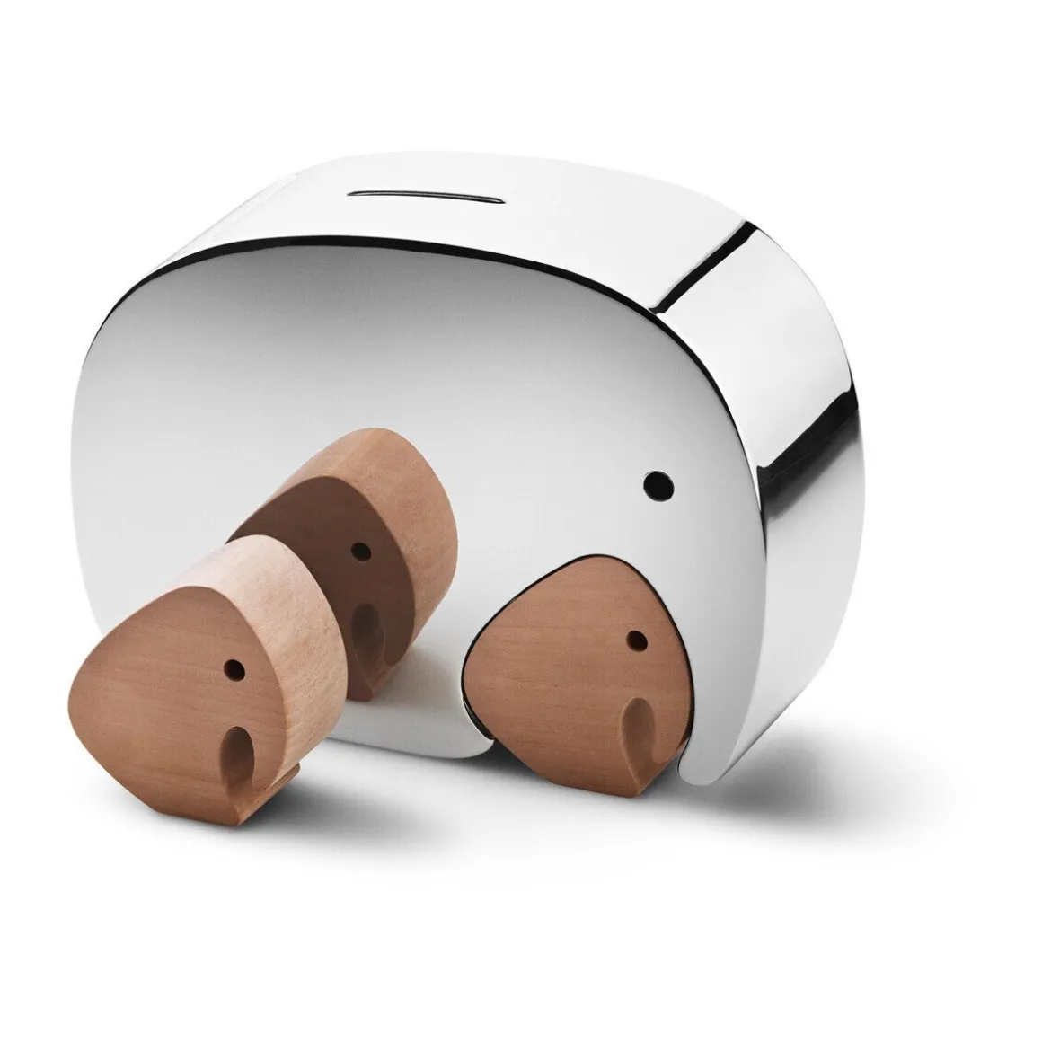 Der Moneyphant mit Zwillingen aus der Serie Elephant von ist eine lustige Spardose, in der Ihre Kinder ihr Taschengeld aufbewahren können. Der schlichte Moneyphant hat außerdem Zwillinge bekommen, die sich unter seinen Rüssel kuscheln oder neben ihm aufgebaut werden können. Die dekorative Wirkung der Sparbüchse erhält damit einen lebendigen Touch.