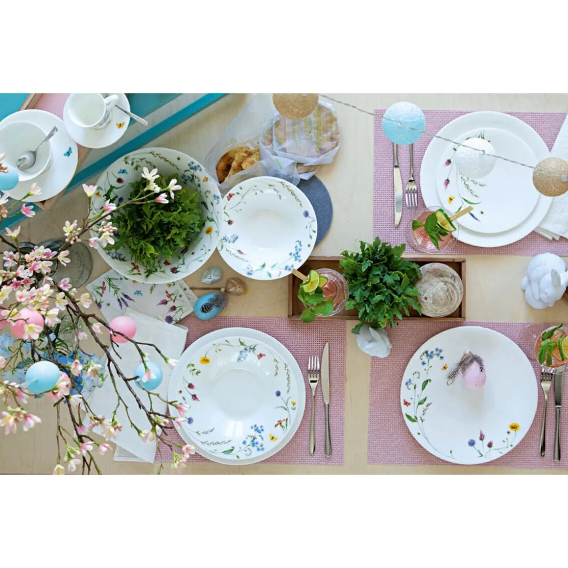 Der flache Teller der Serie Nora Spring Vibes von bringt filigrane Lebensfreude auf den Tisch. Das blühende Erscheinungsbild des flachen Tellers lädt zum freudigen Servieren und zum fröhlichen Genießen ein.