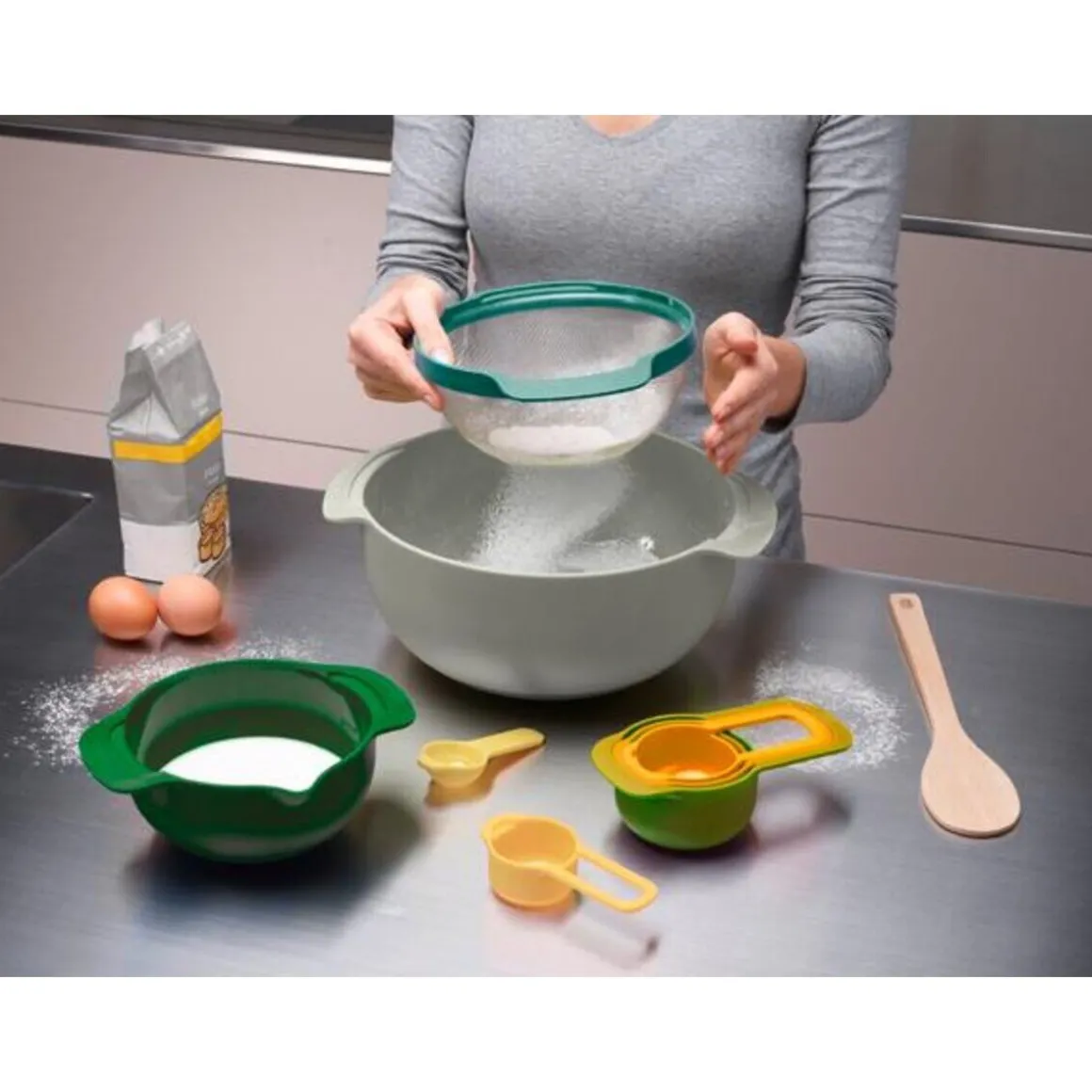 Das Schüssel-Set der Serie Nest 9 Plus Opal von besticht durch sein cleveres Design und sorgt für Ordnung in Ihrer Küche. Sie erhalten gleich 9 Teile, die Sie platzsparend in einem Stück stapeln können und somit schnell parat haben.