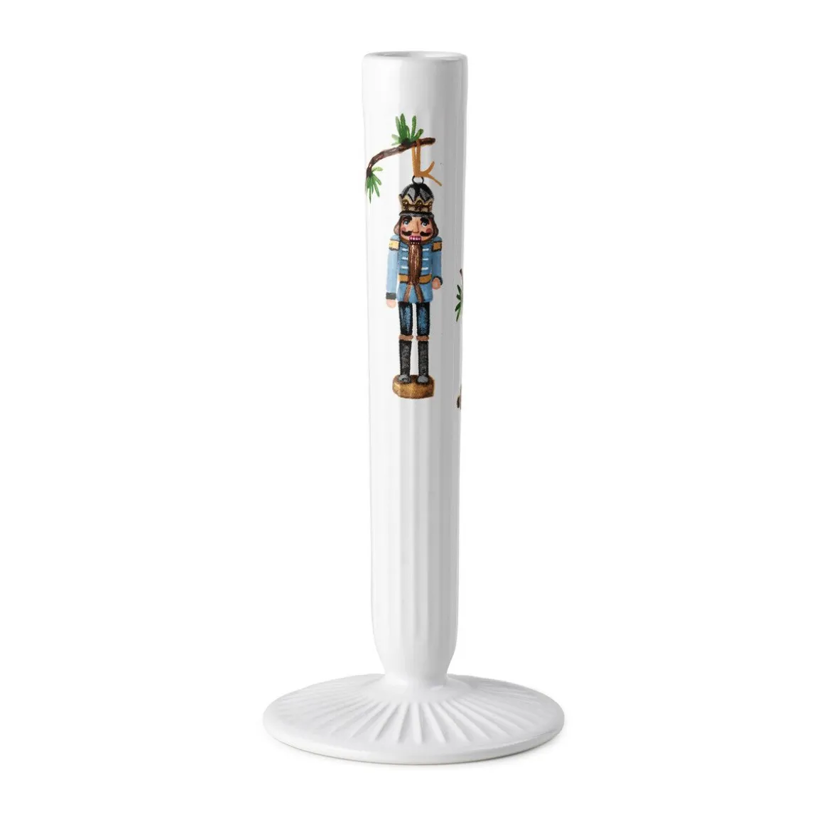Der von Hand gefertigte Kerzenständer Hammershøi Christmas von begeistert durch sein akkurates Relief und sein Dekor aus Aquarellfarben. Auf dem Kerzenständer ist ein Lärchenzweig zu sehen, der mit einem Nussknacker geschmückt und hübsch anzusehen ist.