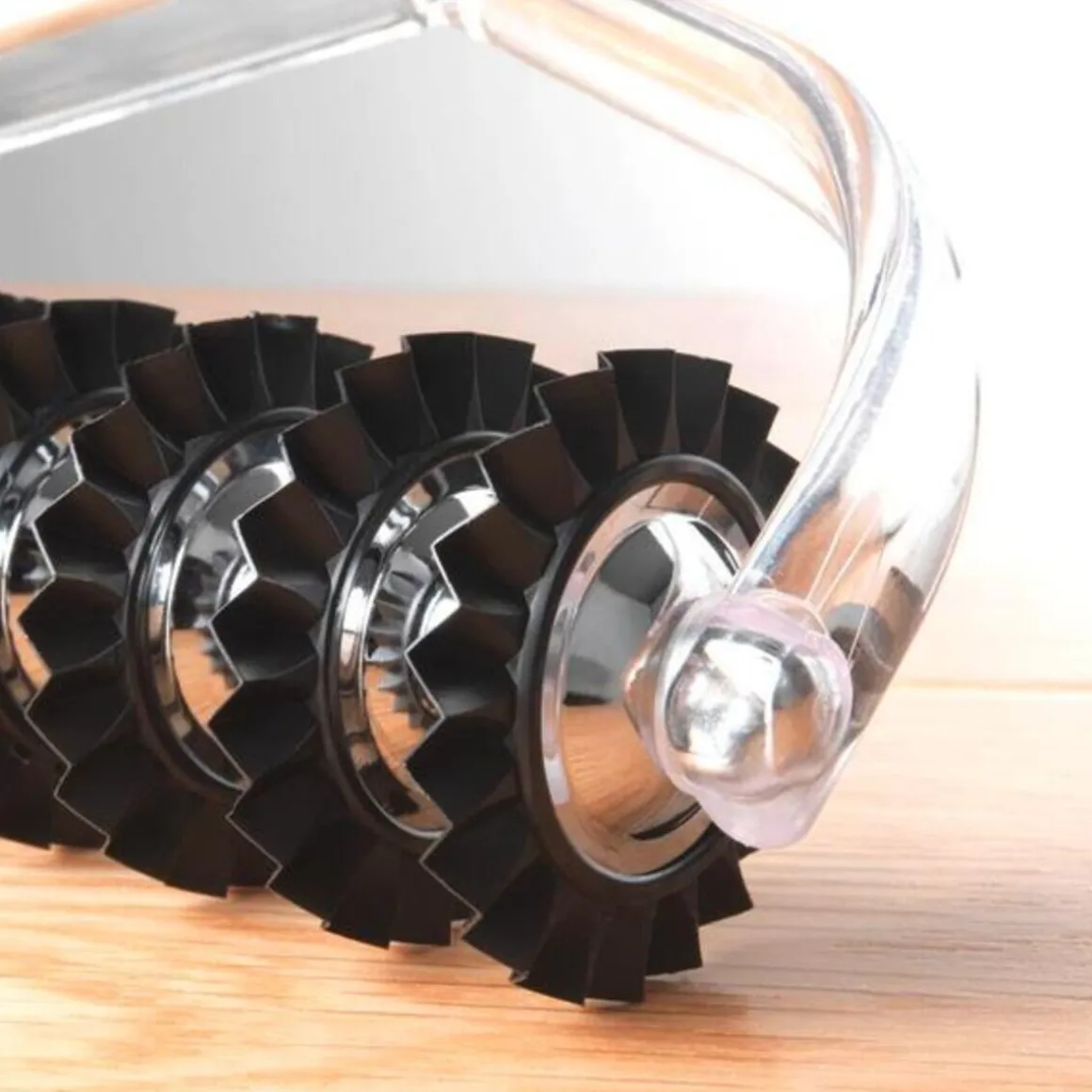 Mit dem pfiffigen Teigschneider Pastabike von haben Sie einen praktischen Küchenhelfer bei der Zubereitung von Pasta zur Hand. Die griffige Konzeption lässt sich mit seinen neun Rädchen optimal über den Teig führen und hinterlässt einen ansprechenden und kreativen Zackenschnitt.