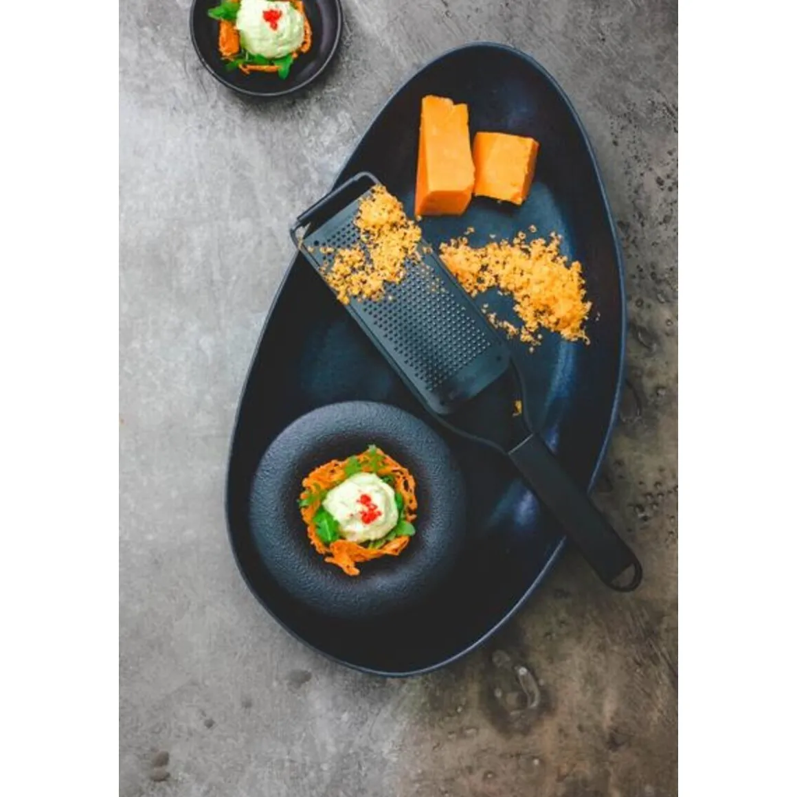 Die feine Reibe aus der Serie Black Sheep von ist optisch, wie auch haptisch, ein absolutes Highlight für ein stilbewusstes Ambiente. Das Schwarz zieht sich vom Griff über den Rahmen bis zur scharfen Klinge und wird mit der robusten Struktur und einer rundlichen Formgebung harmonisch vollendet.