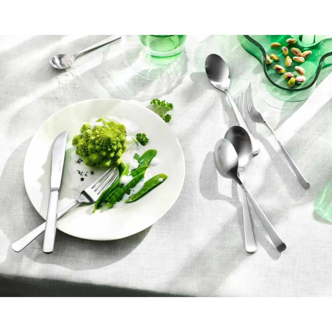 Der Espressolöffel Atlantic von besticht durch seine verführerische Haptik. Die weichen Übergänge und Linien, das abgerundete Stielende und die gebürstete Oberfläche kommen auf der Tafel gut an und schmeicheln den Fingern während der Nutzung. Runden Sie den Espressogenuss mit diesem handlichen Löffel stilsicher ab.