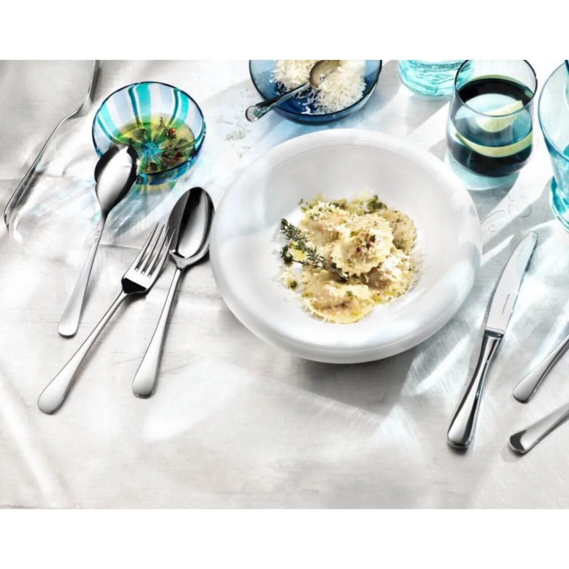 Das Menübesteck-Set Como von ist von einer harmonischen Formsprache und ausgewogenen Proportionen geprägt. Die weiche Linienführung und der Spannungsbogen am Stielende runden das Besteck ideal ab.
