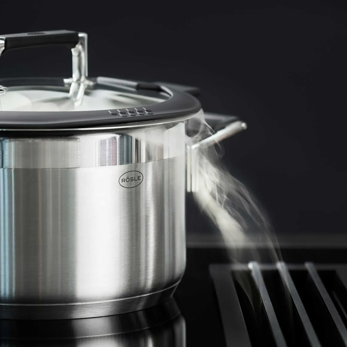 Das Topf-Set Silence Pro von begeistert durch seine hohe Funktionalität und den Komfort, den es beim Kochen bietet. Durch clevere Besonderheiten, wie einen seitlich einhängbaren Deckel mit Abgießfunktionen, lassen sich vielerlei Köstlichkeiten einfach und schnell zubereiten.