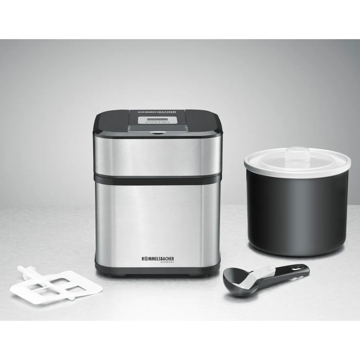 - wird mit einem Eisportionierer und einem Deckel für den Gefrierbehälter geliefert