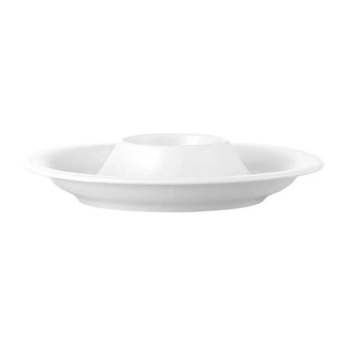 Der Eierbecher Suomi Weiß von Rosenthal sorgt für ein gemütliches Ambiente beim Frühstück. Er zeigt sich in einem zeitlos klassischen Design mit einem schalenförmigen Teller und einer Aussparung für das Ei. Es gibt keine Dekore oder Verzierungen, die von der klaren Linienführung ablenken. Das zur Fertigung verwendete Hartporzellan in schimmerndem Weiß verleiht dem Eierbecher eine elegante Note. Durch diese hohe Produktqualität eignet er sich auch für die Reinigung in der Spülmaschine.