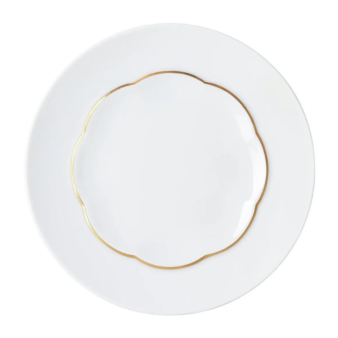 - flacher Teller Sonetto Oro in samtigem Weiß