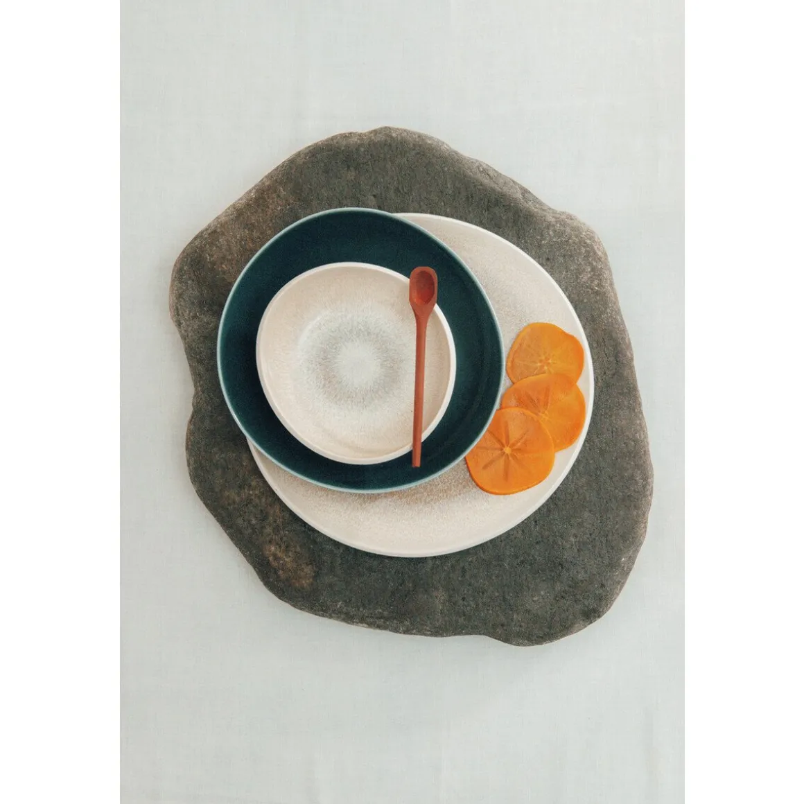 Mit dem flachen Teller Junto Dune von kommt das sanfte Erscheinungsbild natürlicher Dünenlandschaften auf Ihre Tafel. Die hohe Varianz in der Farbgebung und die fließenden Verläufe kommen durch eine Reaktivglasur zustande, die für ein harmonisches Spiel aus Beige, Braun und Karamell sorgt.