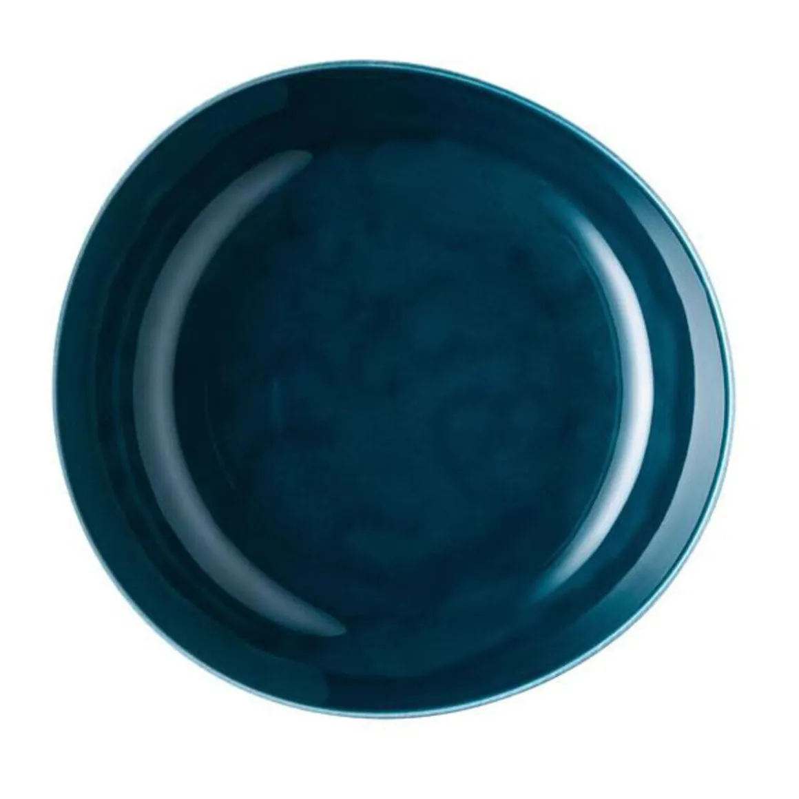Der einzigartige Charakter des tiefen Tellers der Serie Junto Ocean Blue von entsteht durch die Glasur per Hand.
