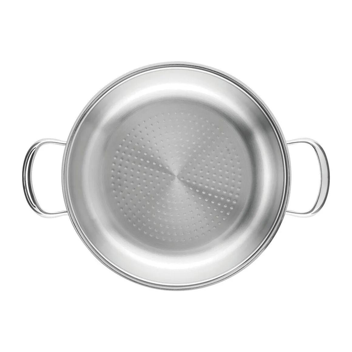 Gemüsepfannen, Fleisch und leckere Eierspeisen gelingen mit der Bratpfanne Romana i von immer. Durch den Mix aus Edelstahl und Kupferboden hält die Pfanne höchsten Temperaturen stand ohne dass Speisereste anhaften.Wenig Fett verwenden und gleichzeitig kross anbraten – kein Problem dank der Kugelprägung auf der Innenseite, die eine fettarme Zubereitung von Fleisch und Gemüse ermöglicht. Trotzdem bleiben alle leckeren Röstaromen erhalten. Da am Boden nichts anklebt, gelingen auch empfindliche Gerichte.