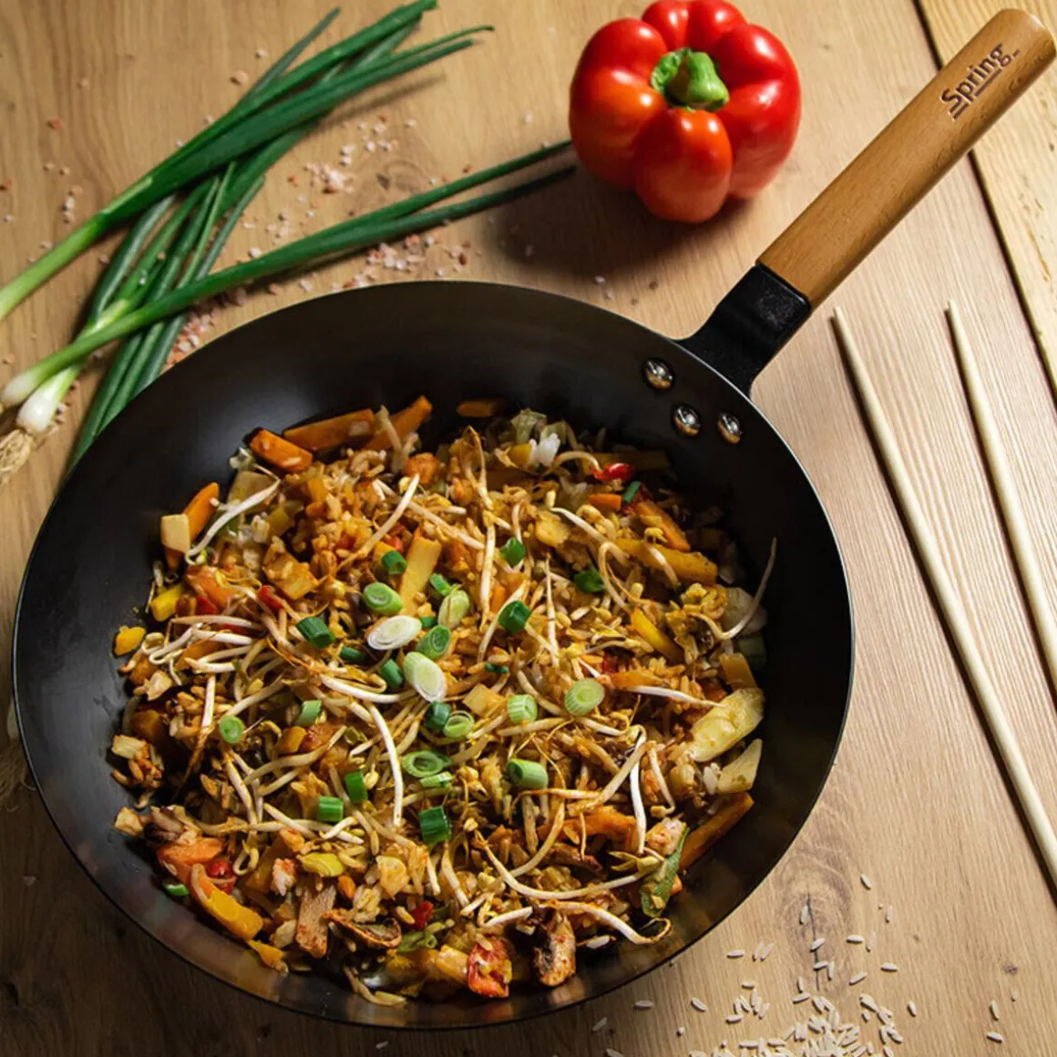 - Wokpfanne Canton mit einem Griff aus Holz, der sich jederzeit angenehm greifen lässt und kühl bleibt