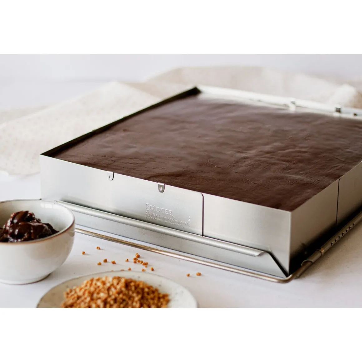 Mit dem Backrand Moos von gelingen Ihnen Kuchenböden und Füllungen auf professionelle Art. Einfach den verstellbaren Rahmen beim Backen und Füllen verwenden, schon schaffen Sie cremige Leckereien in unterschiedlichen Größen.