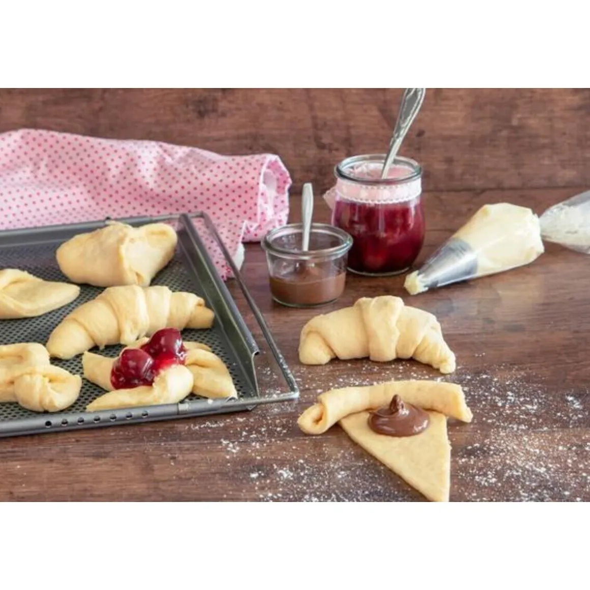 Mit dem Herdbackblech aus der We love baking-Reihe von gelingen Backwaren besonders gut. Durch die Perforierung des Bleches wird die Hitze hervorragend verteilt und es werden besonders knusprige Backergebnisse erzielt.