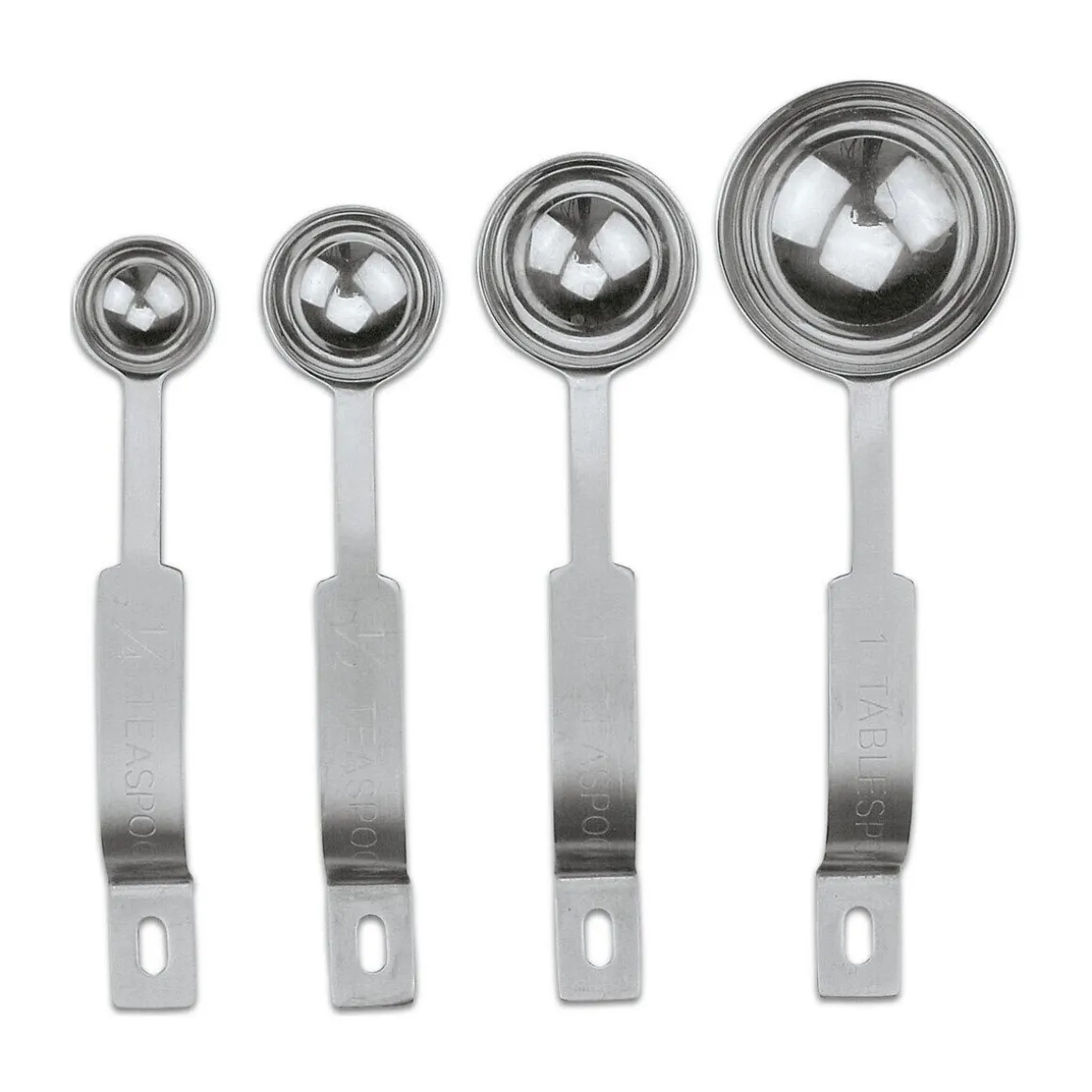 Das praktische Set besteht aus insgesamt 4 Messlöffeln aus rostfreiem Metall, mit denen Sie unterschiedliche Mengen abmessen können. Die Löffel fassen 1,25, 2,5, 5 sowie 15 ml und entsprechen damit 1/4, 1/2 und einem ganzen Teelöffel sowie einem ganzen Esslöffel.
