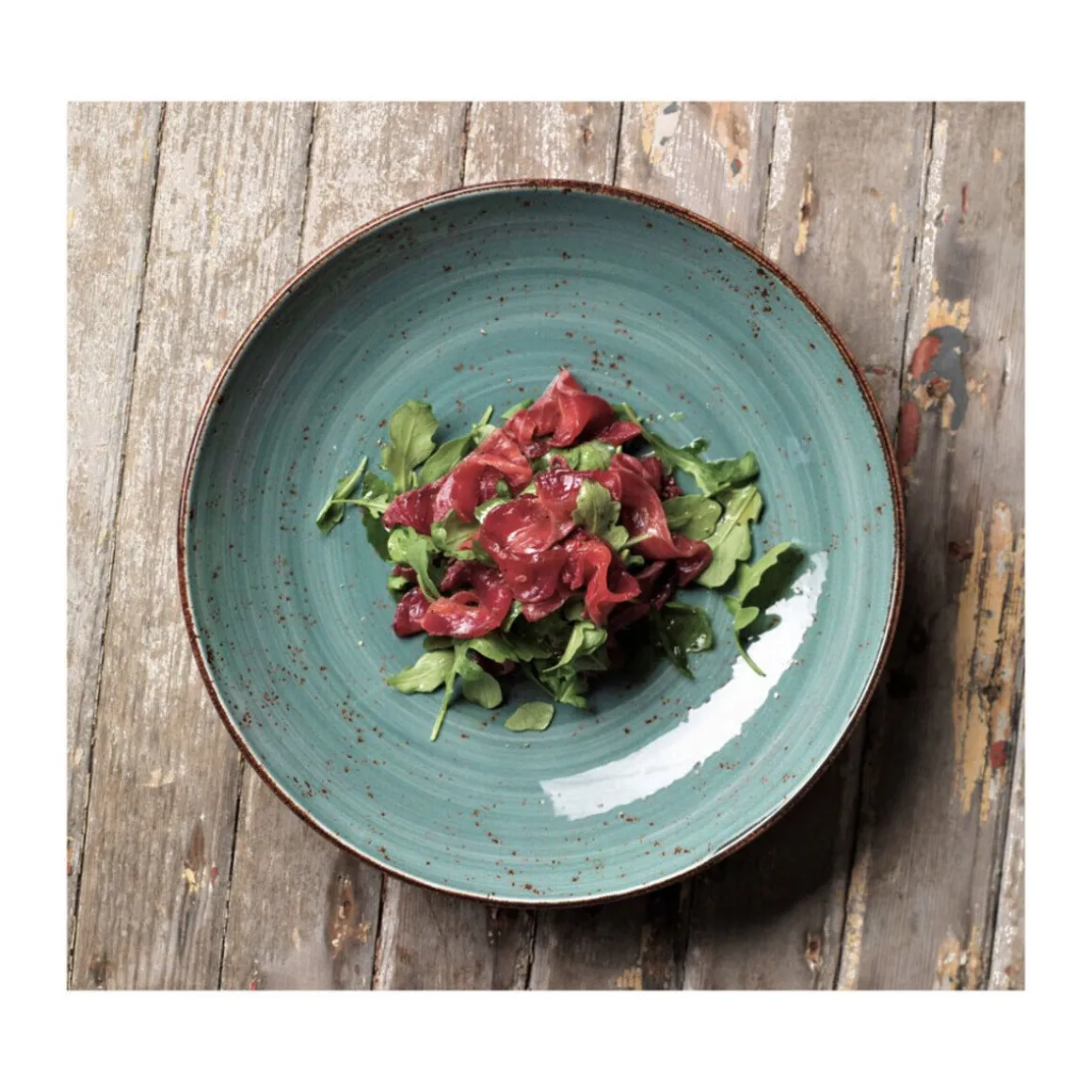 Der Teller Coup 1130 mit 28 cm Durchmesser von Steelite in Craft Blue ist ein echtes Schmuckstück. Gefertigt aus hochwertigem Porzellan, sorgt ein besonderes Fertigungsverfahren dafür, dass jeder Teller leichte Unebenheiten im Material aufweist. Durch diese Strukturen wird jedem Teller ein ganz individuelles und natürliches Aussehen verliehen, welches hangefertigter Töpferkunst sehr nah kommt. Jeder Teller Coup 1130 ist somit einzigartig und ideal für jede Küche, in der Unikate geschätzt werden.