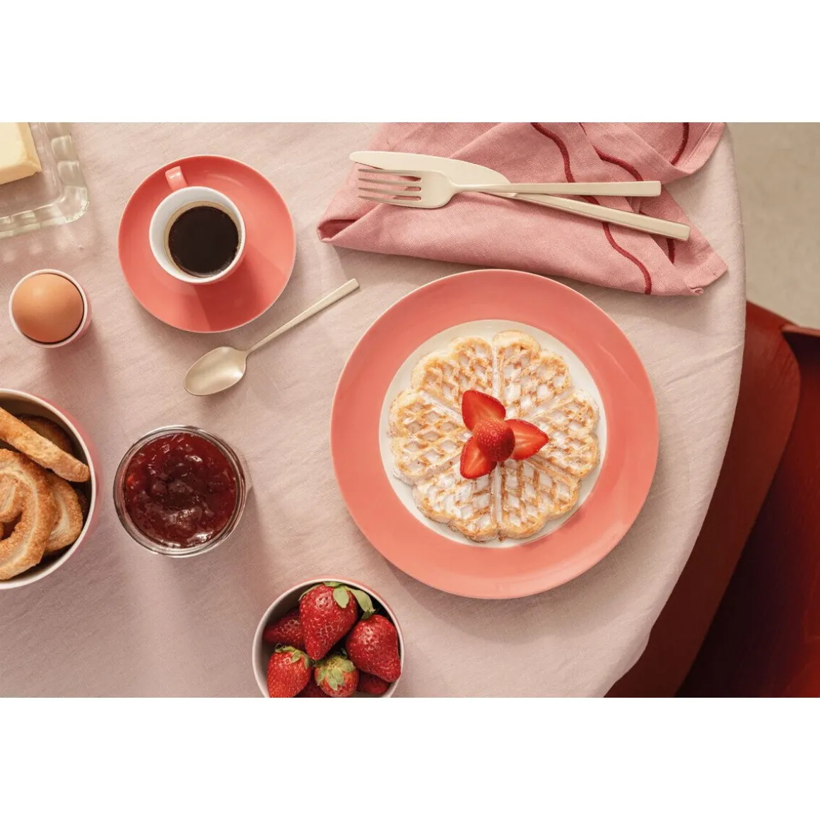 Der Frühstücksteller Sunny Day Soft Red von macht den Genuss von Pancakes, Brötchen und Waffeln zu einem Fest der guten Laune. Mit dem sanften Rot der Fahne umgarnt der Teller Ihre Köstlichkeiten und setzt farbenfrohe Akzente.