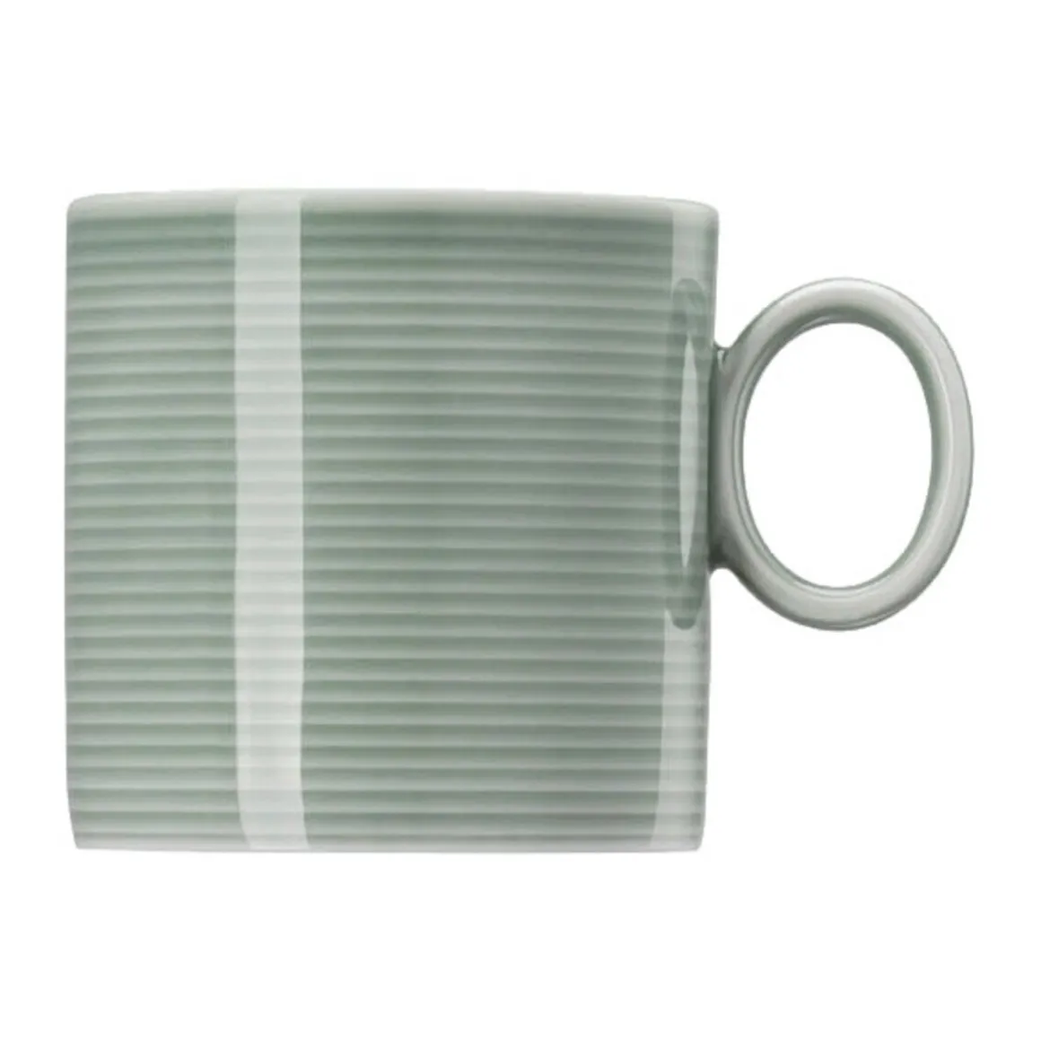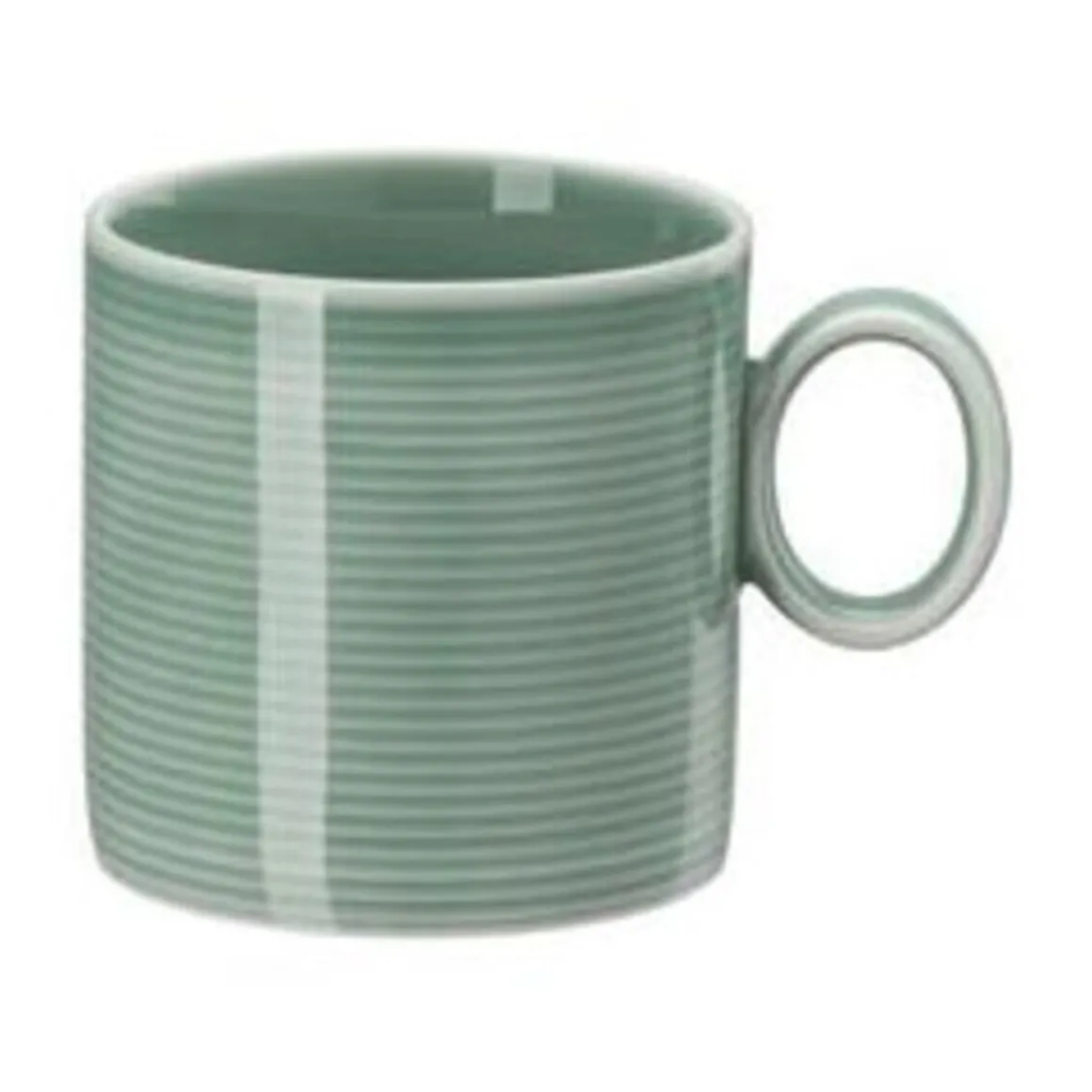Mit der Kaffeetasse Loft Colour Moss Green von schmeckt der Kaffee am frühen Morgen oder in der Pause im Büro verführerisch lecker. Das kreisförmige Linienrelief, das sich über die Außenseite des Porzellans zieht, belebt das dezente Grün, das in facettenreichen Nuancen auf der Oberfläche zutage tritt.