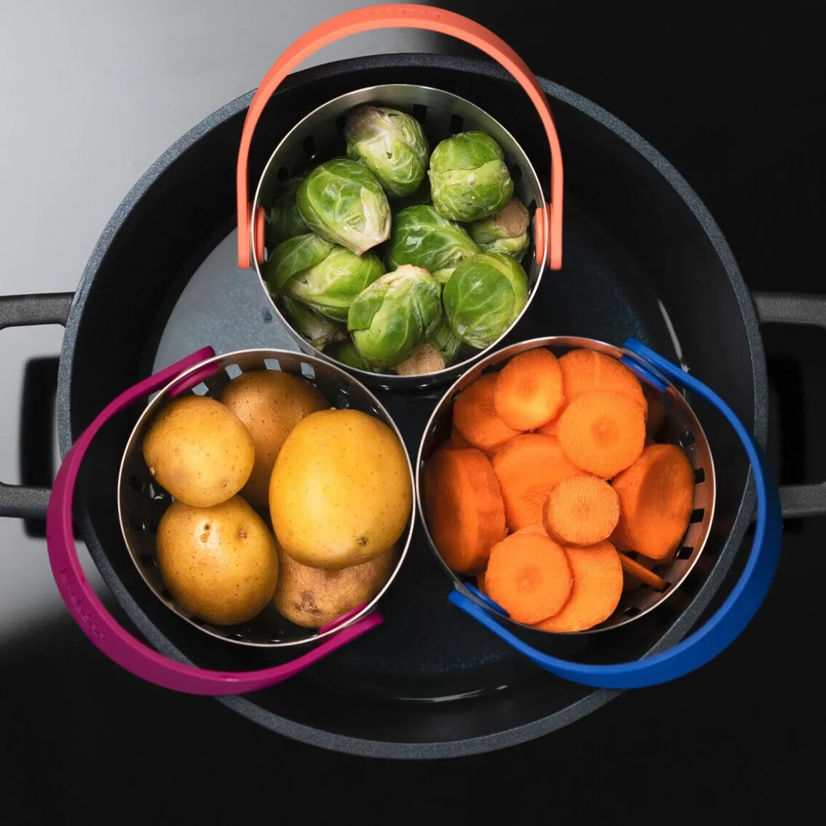 Mit dem Garkörbchen Cookin’Pod Pro von garen und kochen Sie Ihre Köstlichkeiten in einer funktional zusammengestellten Komposition aus Edelstahl.