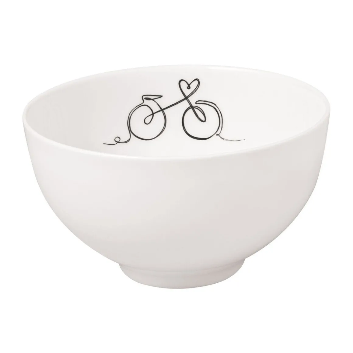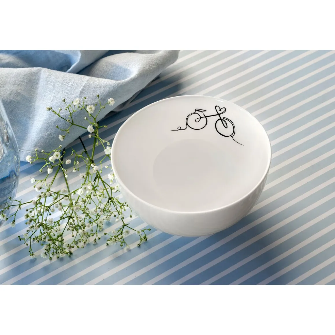 Die Bol Statement Lines Family von kommt mit einem zeitlosen Charme daher, der sich nach Belieben kombinieren lässt. Das samtige Weiß wird von einem schwungvollen Motiv belebt, das im One Line-Stil gehalten ist und ein Fahrrad mit Herz-Lenker zeigt. Bringen Sie mit dieser Schale einen zeitlosen Ausdruck auf den Tisch.