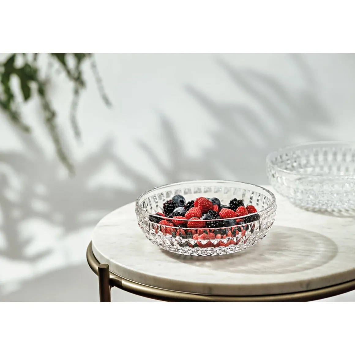 Die Bol Boston von begeistert durch ihre verführerische Strahlkraft, die an das Funkeln eines Diamanten erinnert. Ihr faszinierendes Facettenmuster bricht das Licht in vielfältige Nuancen, die Ihr Obst, Ihre Desserts oder Müslis liebevoll umspielen. Sorgen Sie mit dieser Schale für unvergessliche Momente voller Brillanz.