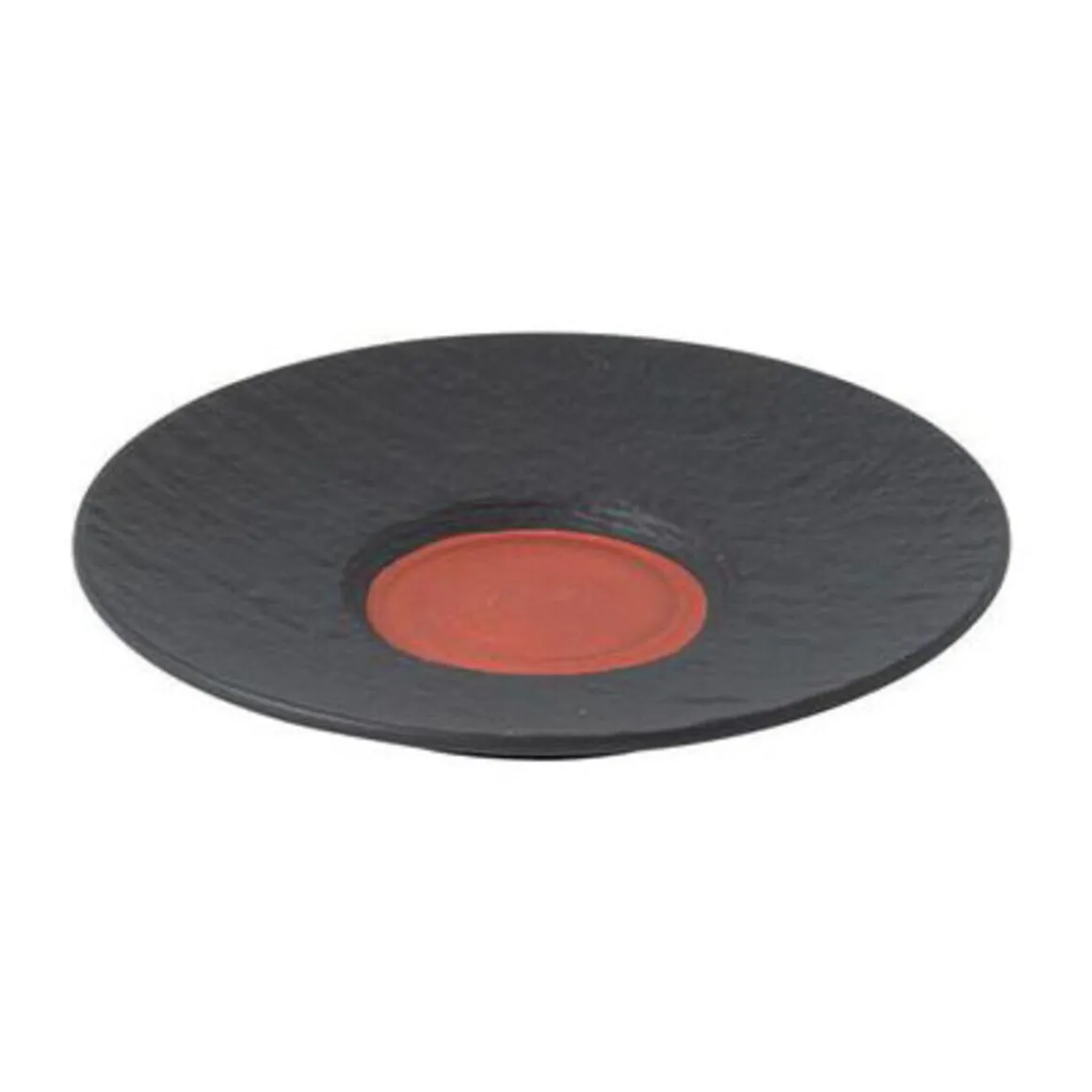 Die Café au Lait Untertasse aus der Serie Manufacture Rock Glow von zeugt von Lebendigkeit und agiert mit ihrem markanten Look gegen jede Art von Langeweile auf der Tafel. Das schwarze, schieferähnliche Erscheinungsbild wird von einem Mittelpunkt im Kupferton akzentuiert und zieht so die Blicke auf sich.