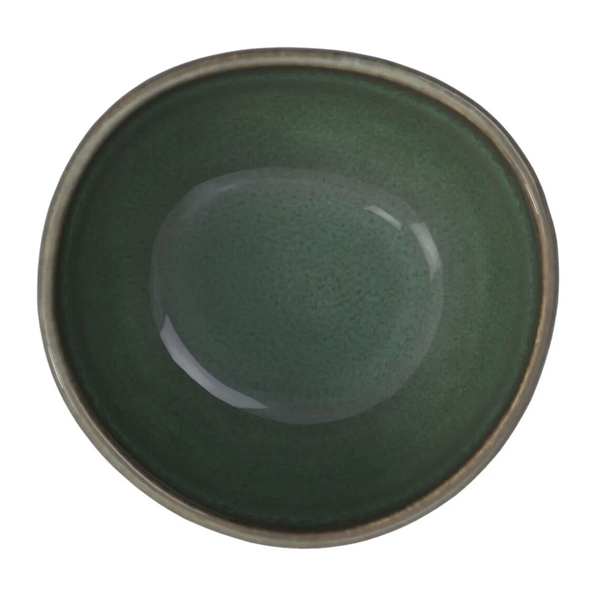 Mit der Dipschale Lave vert von kredenzen Sie einen leckeren Kräuterdip oder würzige Salsa-Sauce mit handwerklichem Charme. Das einzigartige Geschirrstück ist von einer geschwungenen Linienführung geprägt und erhält durch eine reaktive Glasur ihren einzigartigen Pottery-Look. Bereichern Sie Ihre Tafel durch diese Schale mit variierenden Farbfacetten und fließenden Übergängen, die sich mit individueller Anmut arrangieren lassen.