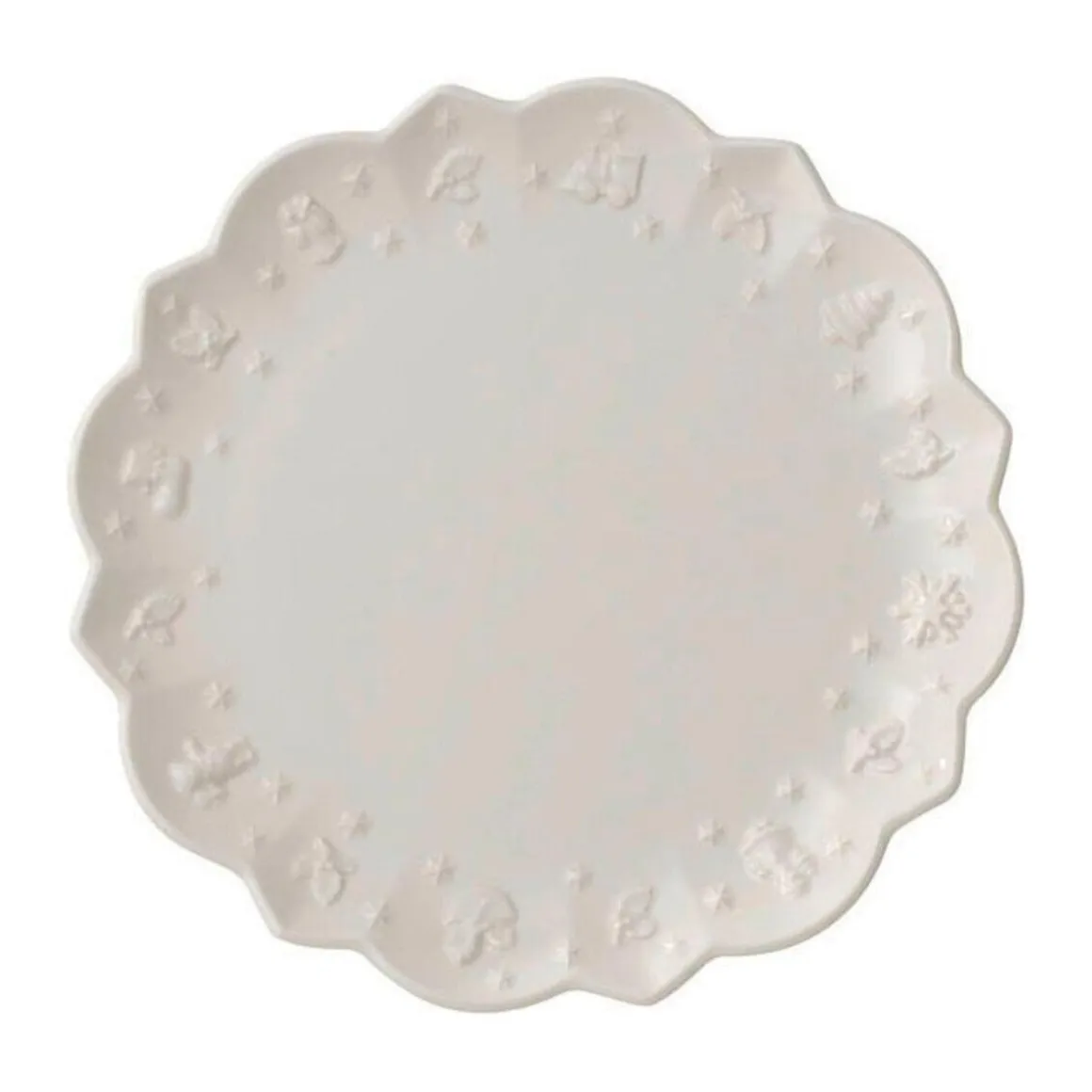 Der Frühstücksteller Toy’s Delight Royal Classic von erinnert mit seiner Formsprache an einen Pappteller, auf dem sich Brote, Orangen oder ein Croissant ausgezeichnet servieren und genießen lassen. Bringen Sie weihnachtlichen Charme auf Ihre Frühstückstafel und begeistern Sie Ihre Gäste mit einem filigranen Relief.