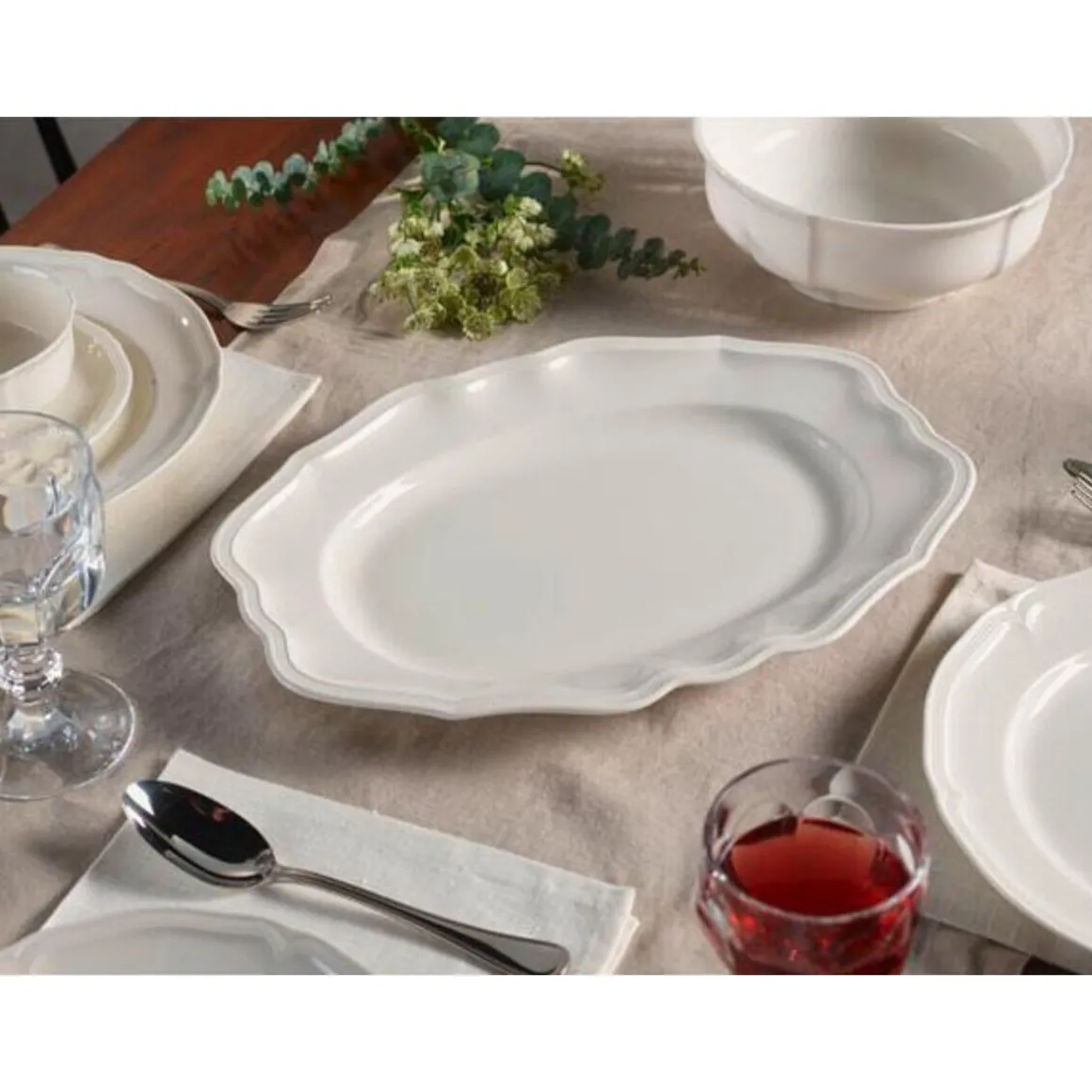 Schwungvolle Linien und ausdrucksstarke Reliefs – die ovale Platte der Serie Manoir von überzeugt bei festlichen Anlässen und beim alltäglichen Gebrauch.