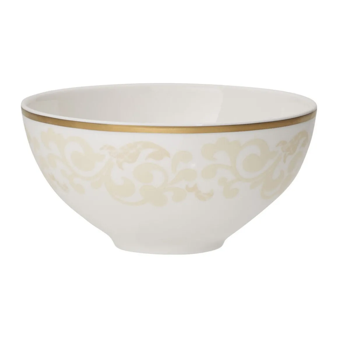 Das hübsche Schälchen Ivoire von sorgt für wohltuende Sanftmut und ein wohlig warmes Gefühl in Ihrem Ambiente. Die warmen Farben und die zarten Verläufe der Ornamente bringen Gelassenheit in das Tischgeschehen. Harmonisch abgerundet wird die Komposition von einem goldenen Band.
