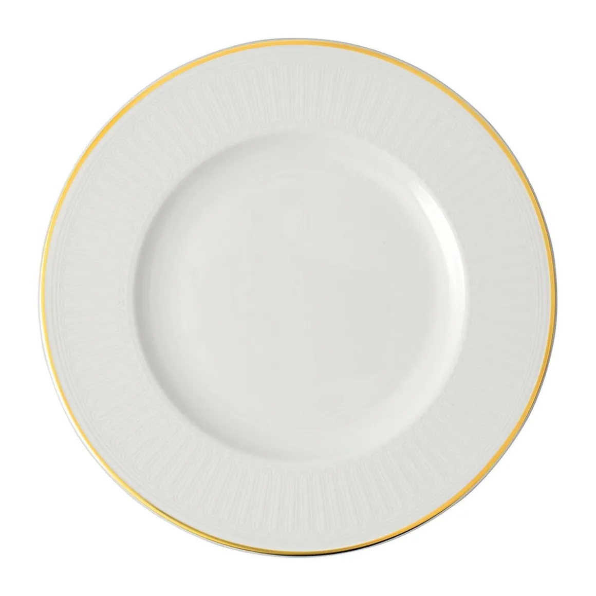 Auf dem Brotteller Château Septfontaines von kommen herzhaft belegte Baguettescheiben und geschmackvolle Bruschetta ausgesprochen gut zur Geltung. Die goldene Kontur und das faszinierende Relief umspielen Ihre Brote, während das samtige Weiß als verführerischer Kontrast dient. Verwöhnen Sie Ihre Gäste mitten im Alltag mit einem luxuriösen Hauch.
