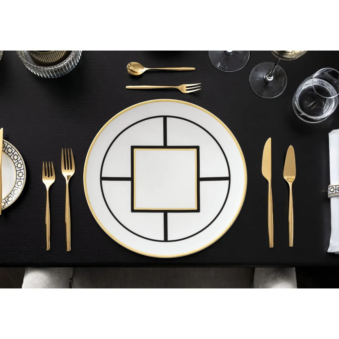 Der Frühstücks-/Dessertteller MetroChic von ist von einem samtigen Weiß gekennzeichnet, das durch ein kräftiges Schwarz und glänzende Goldnuancen akzentuiert wird. Die geometrischen Formen sorgen für eine verführerische Klarheit, die auf der Tafel anmutig und luxuriös wirkt. Schaffen Sie mit diesem Teller Arrangements, die im Gedächtnis bleiben.